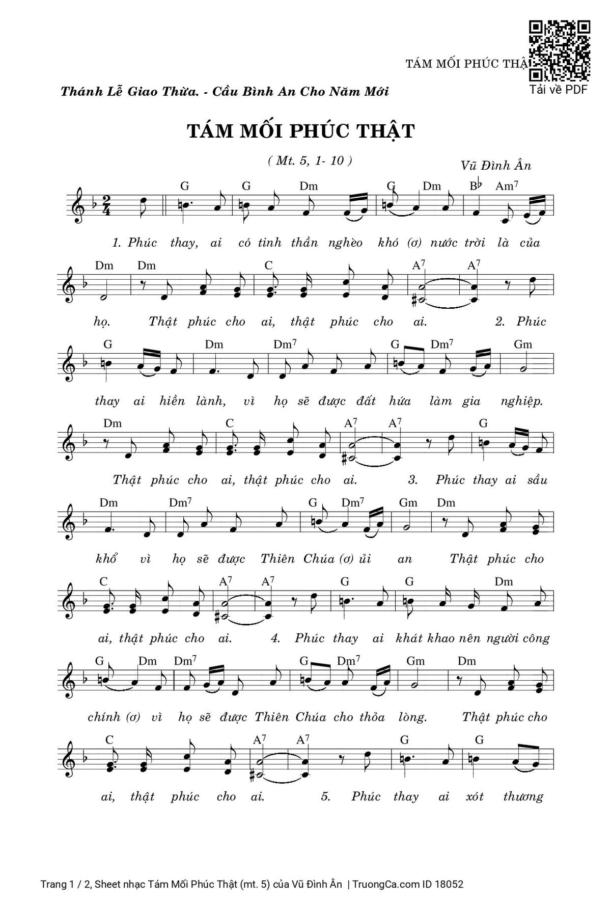 1. Phúc thay, ai có tinh thần nghèo khó Nước Trời là của họ. Thật phúc cho ai, thật phúc cho ai.