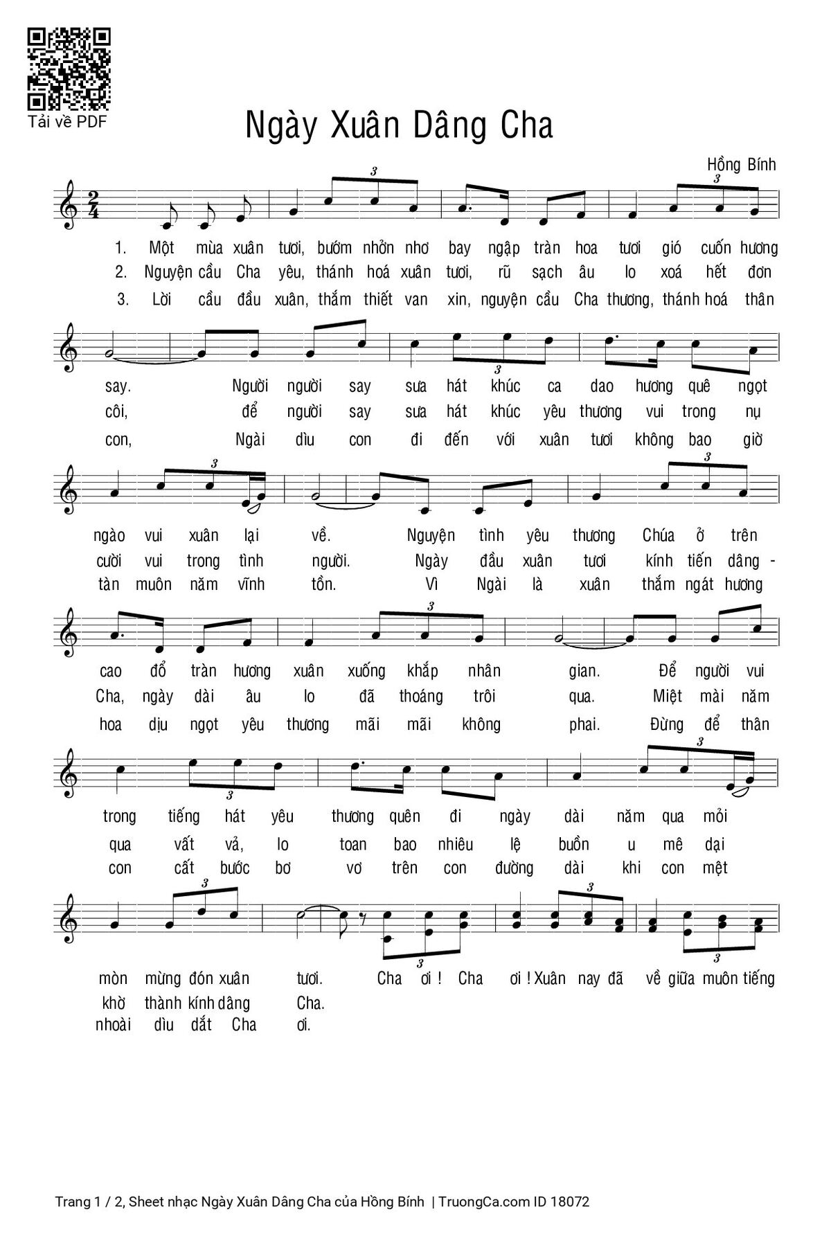 Sheet PDF with the same name Ngày Xuân Dâng Cha: