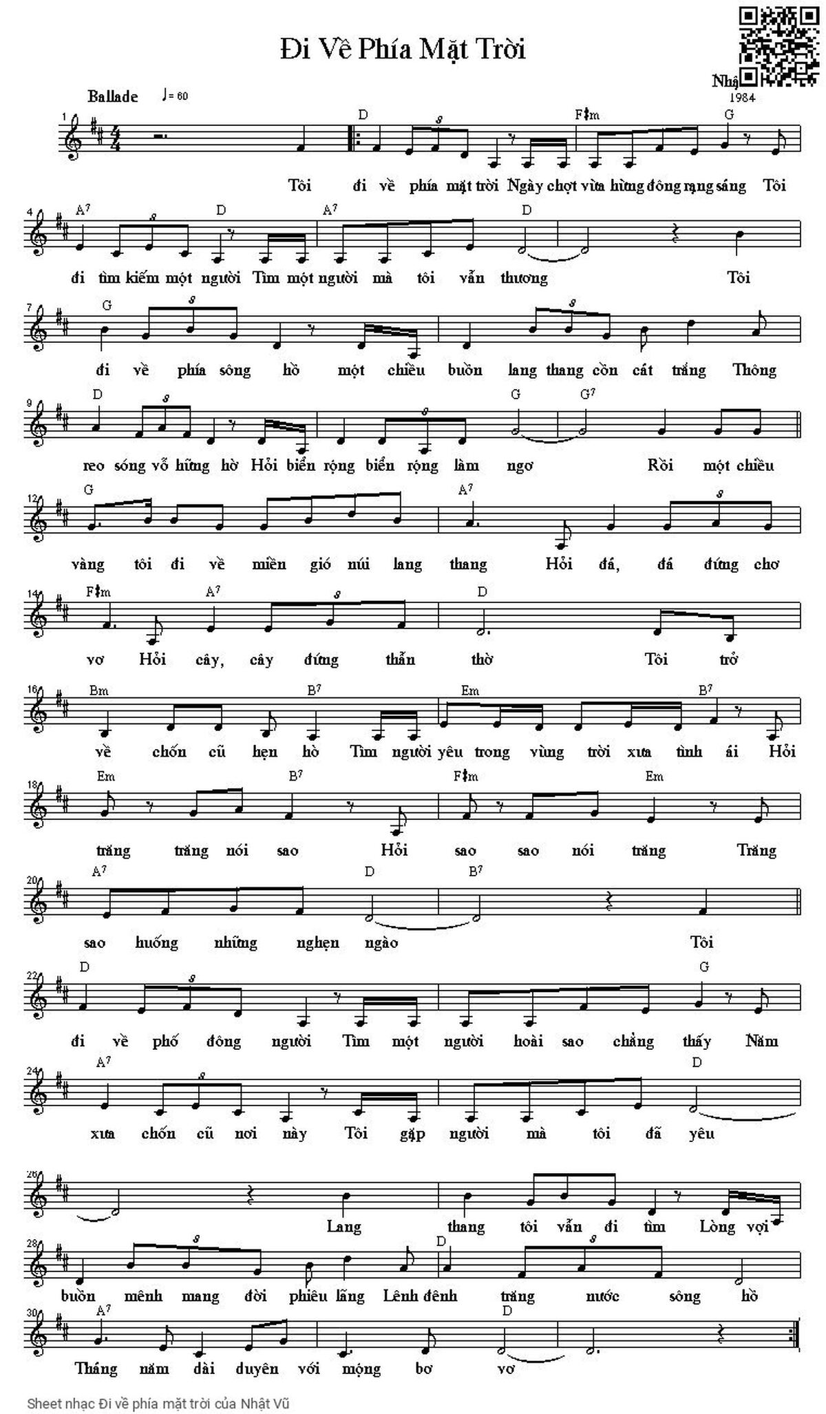 Nhật Vũ Tôi đi về phía mặt trời Ngày chợt vừa hừng đông rạng sáng [PDF] [Sheet] [Lyrics] [Mp4/Midi]