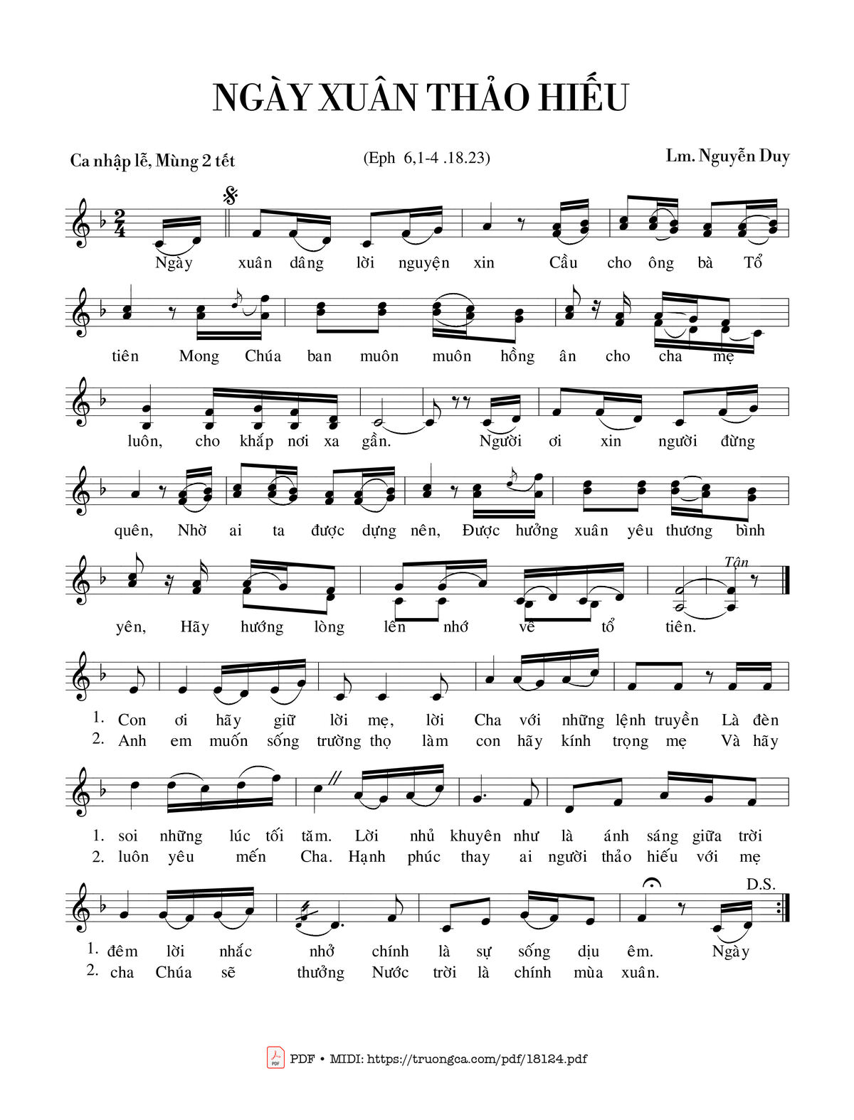 Lm. Nguyễn Duy Ngày xuân dâng lời nguyện xin cầu cho ông bà tổ tiên [PDF] [Sheet] [Lyrics] [Mp4/Midi]