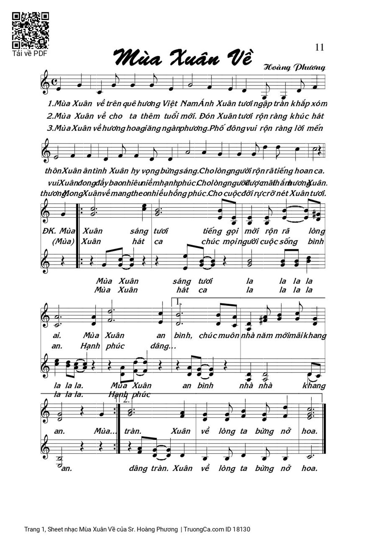 1. Mùa Xuân về trên quê hương Việt Nam. Ánh Xuân tươi ngập tràn khắp xóm thôn. Xuân ân tình Xuân hy vọng bừng sáng. Cho lòng người rộn rã tiếng hoan ca.