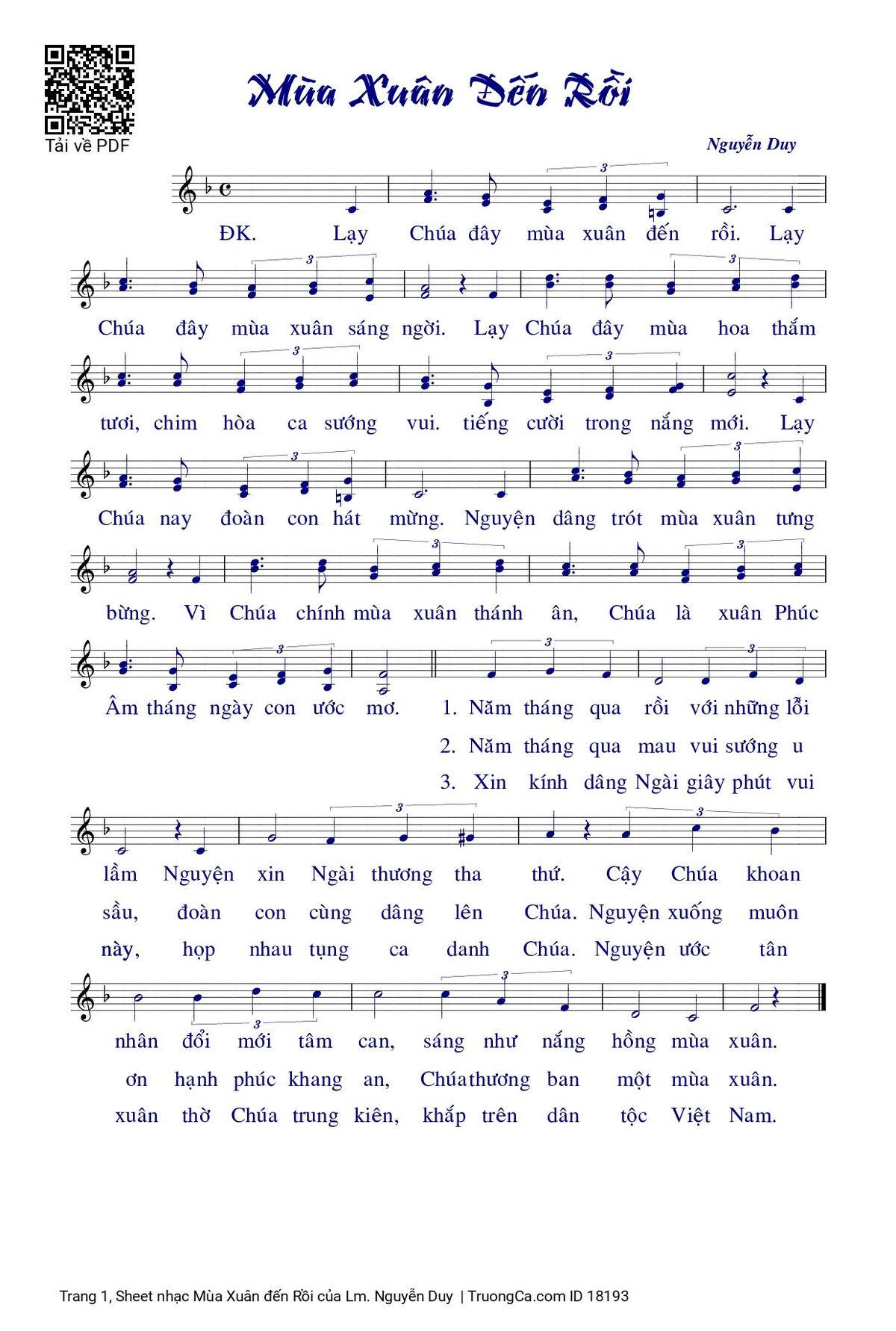 Sheet PDF with the same name Mùa Xuân đến Rồi: