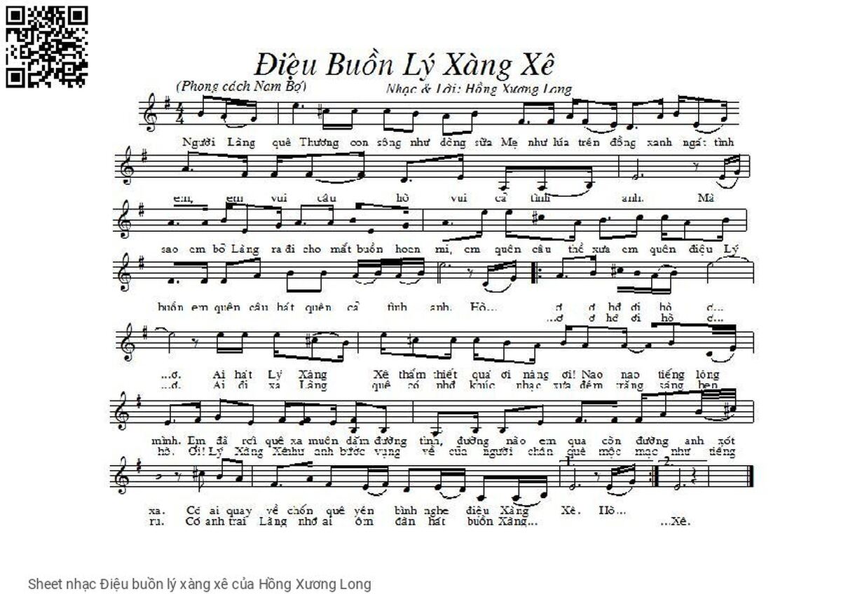 Hồng Xương Long Người làng quê thương con sông như dòng sữa mẹ [PDF] [Sheet] [Lyrics] [Mp4/Midi]