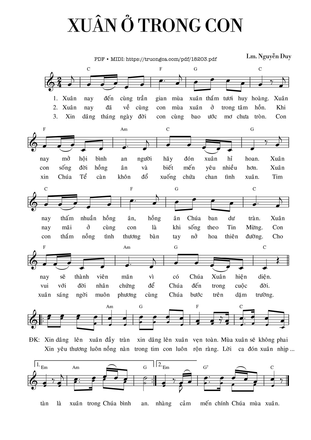 Lm. Nguyễn Duy Xuân nay đến cùng trần gian mùa xuân thắm tươi huy hoàng [PDF] [Sheet] [Lyrics] [Mp4/Midi]