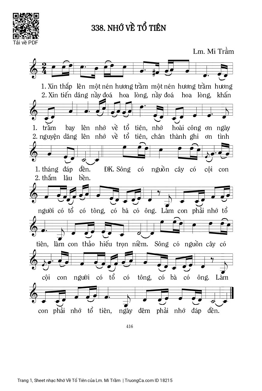 Sheet PDF with the same name Nhớ Về Tổ Tiên: