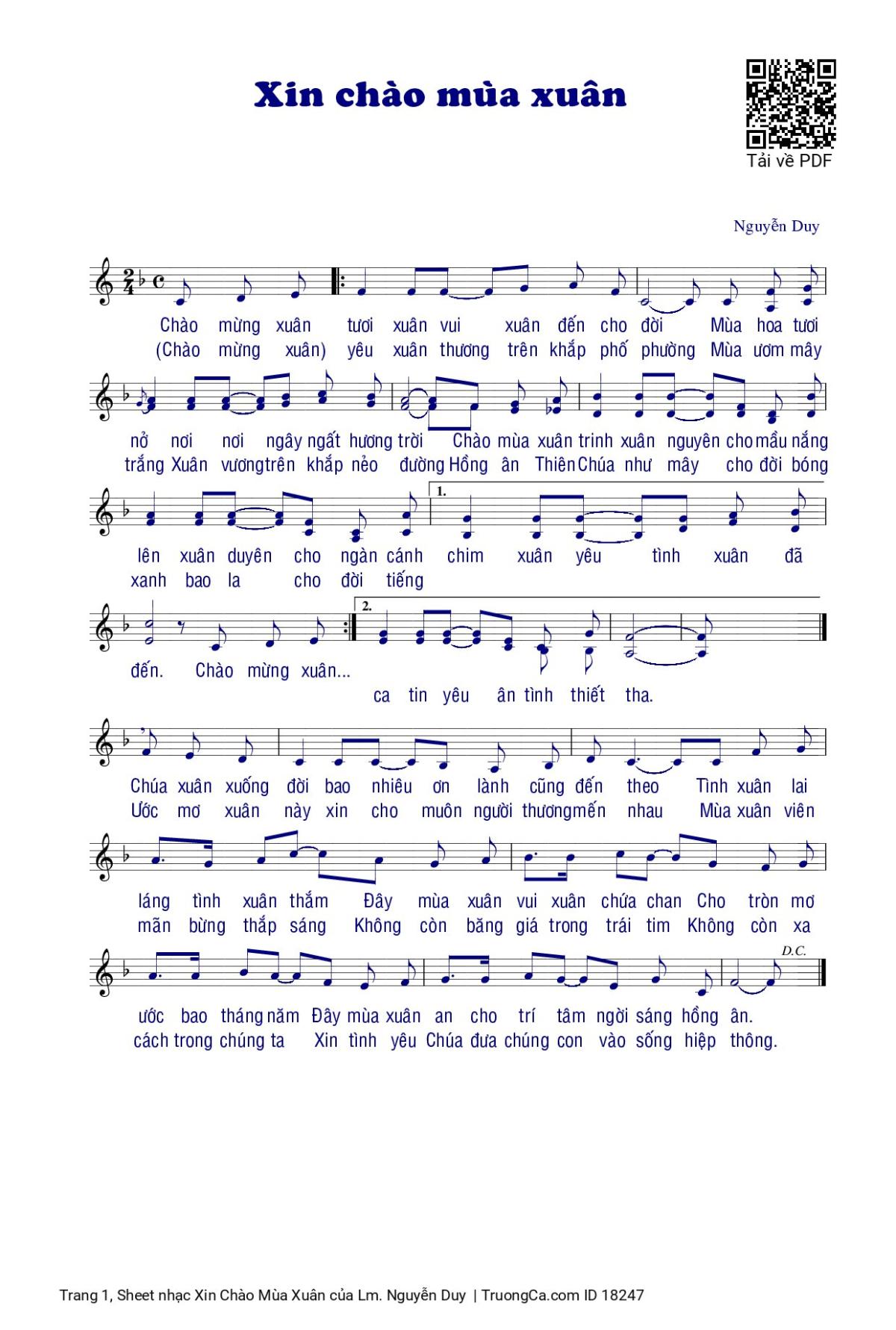 Sheet PDF with the same name Xin Chào Mùa Xuân: