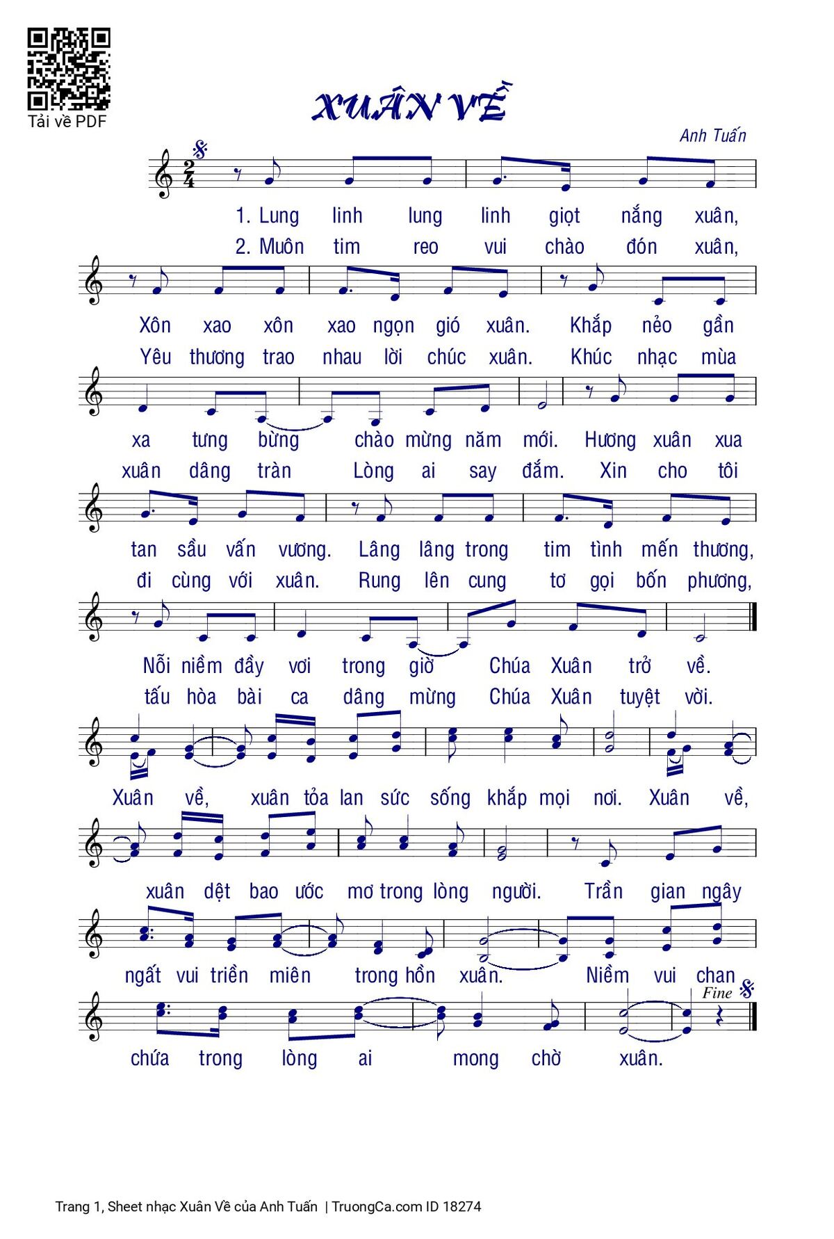 Sheet PDF with the same name Xuân Về: