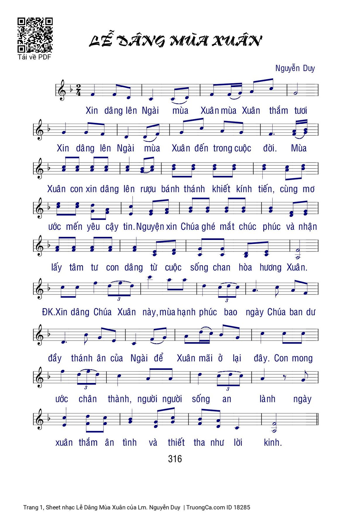 Sheet PDF with the same name Lễ Dâng Mùa Xuân: