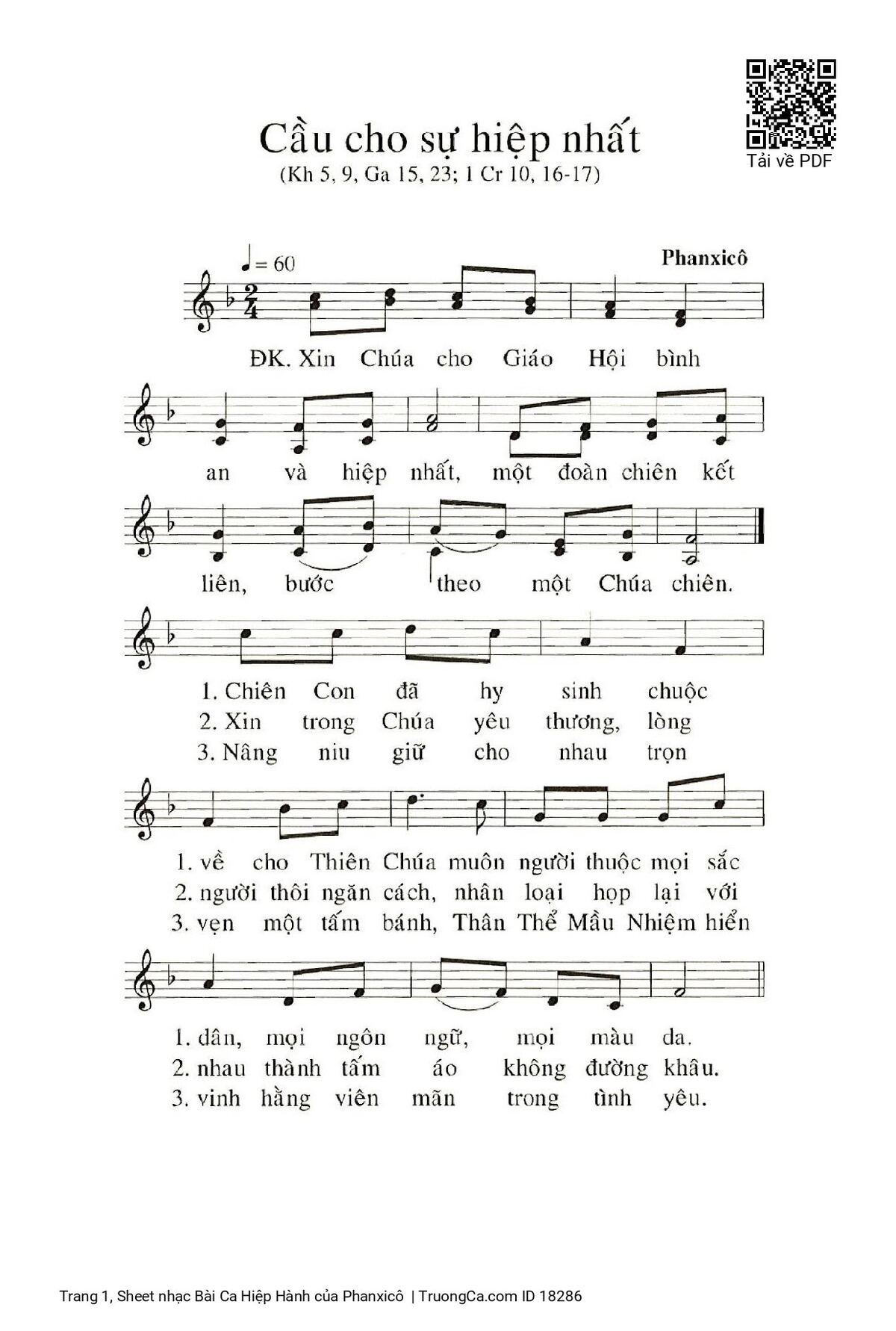 Sheet PDF with the same name Bài Ca Hiệp Hành: