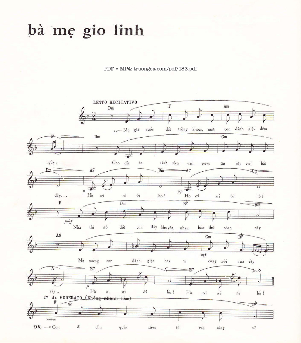 Phạm Duy Mẹ già cuốc đất trồng khoai Nuôi con đánh giặc đêm ngày [PDF] [Sheet] [Lyrics] [Mp4/Midi]