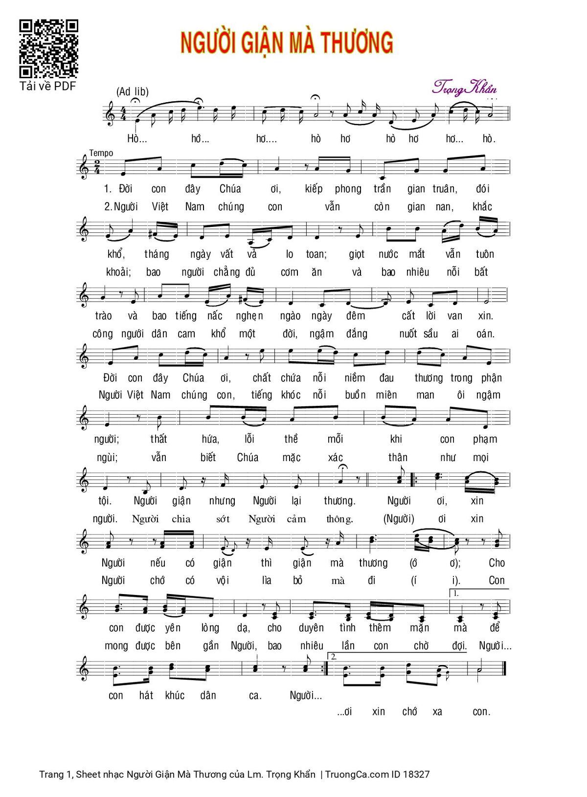 More similar sheets PDF Người Giận Mà Thương: