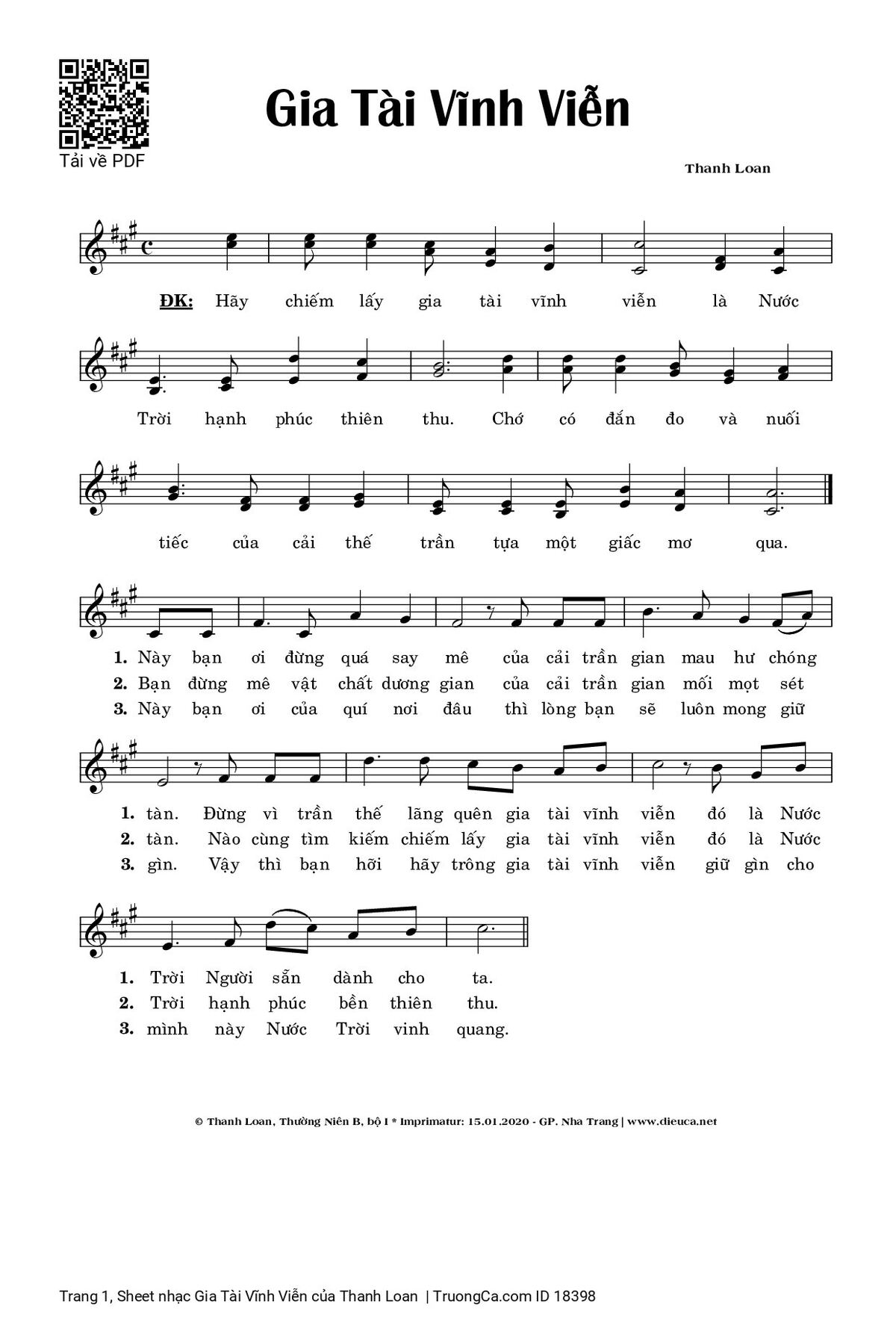 Thanh Loan Hãy chiếm lấy gia tài vĩnh viễn là Nước Trời hạnh phúc thiên thu [PDF] [Sheet] [Lyrics] [Mp4/Midi]