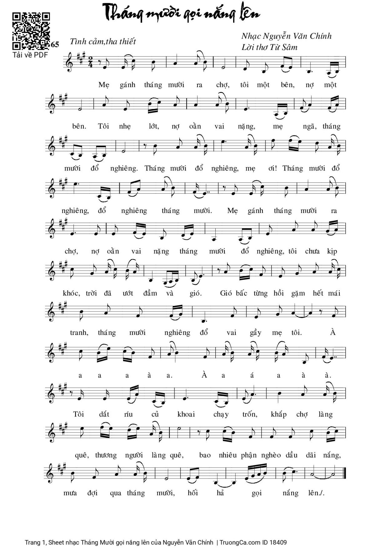 Nguyễn Văn Chính Mẹ gánh tháng Mười ra chợ Tôi một bên nợ một bên [PDF] [Sheet] [Lyrics] [Mp4/Midi]