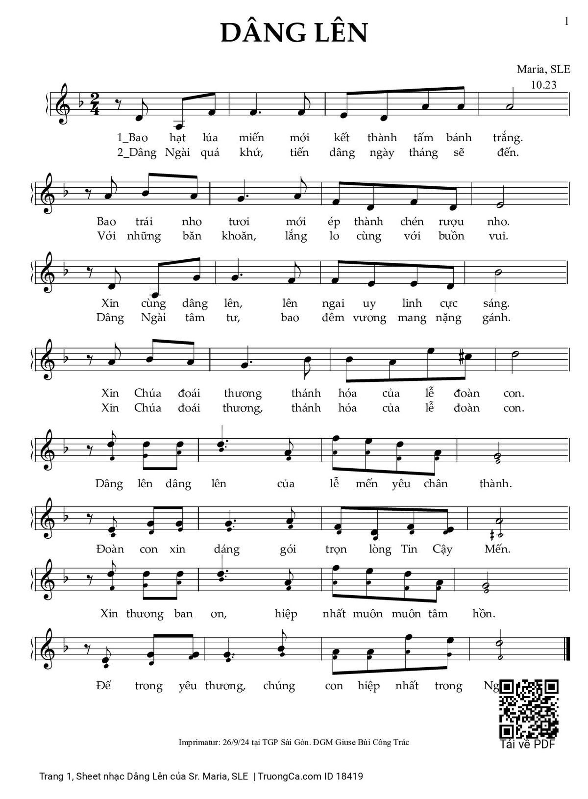 Sheet PDF with the same name Dâng Lên:
