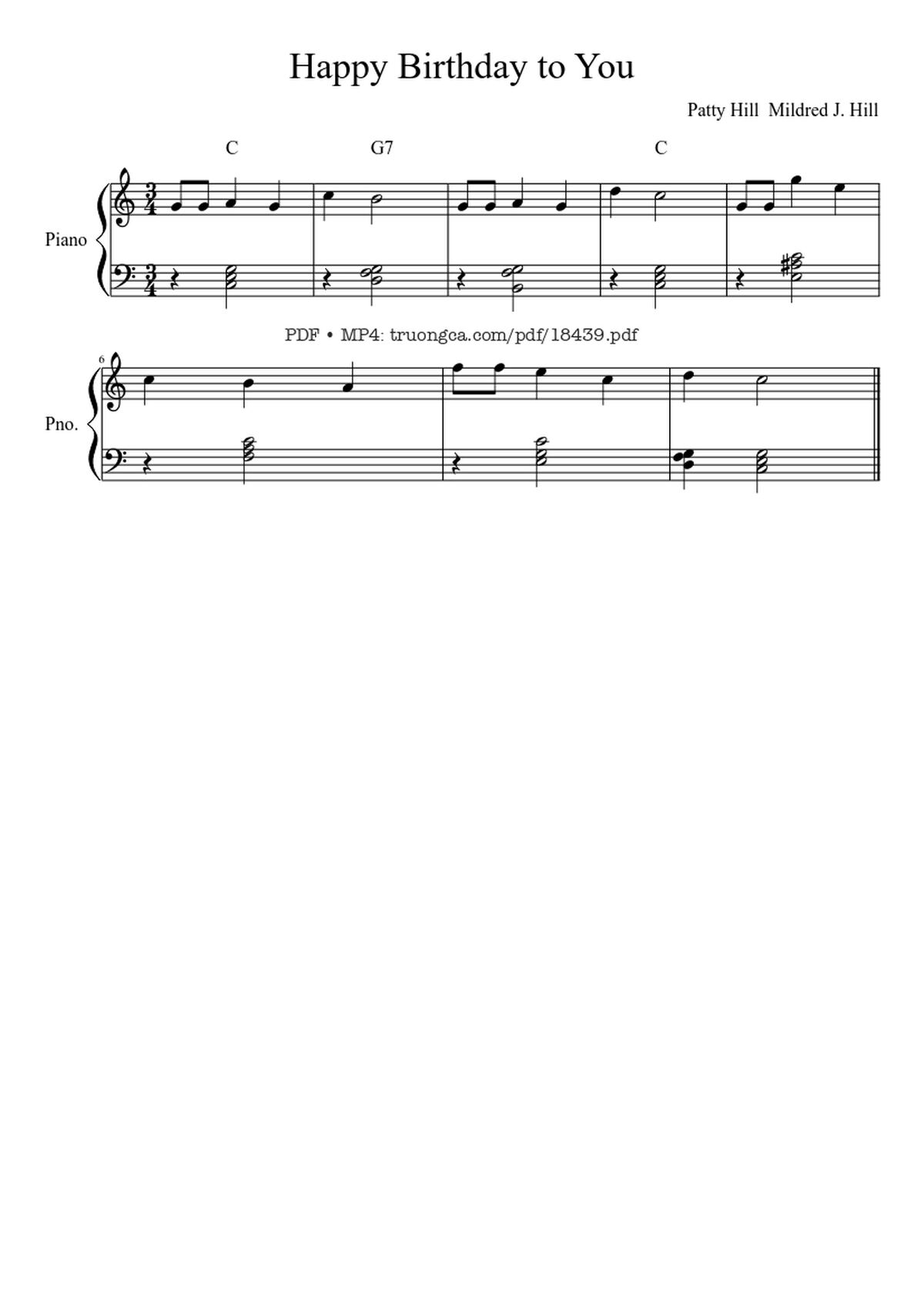 🎹 Patty Hill Happy Birthday to You [PDF] [Sheet] [Lyrics] [Mp4/Midi]