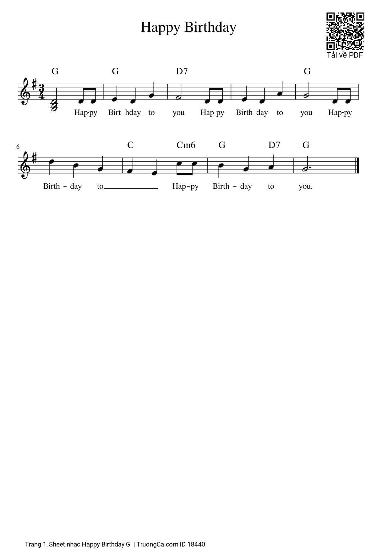 More similar sheets PDF Happy Birthday chúc mừng sinh nhật tone G trưởng: