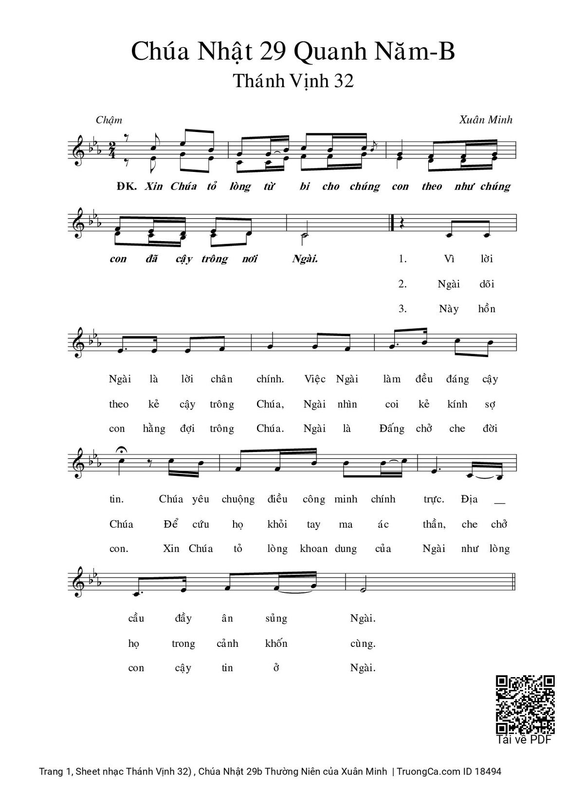 Sheet PDF with the same name Thánh Vịnh 32) , Chúa Nhật 29b Thường Niên: