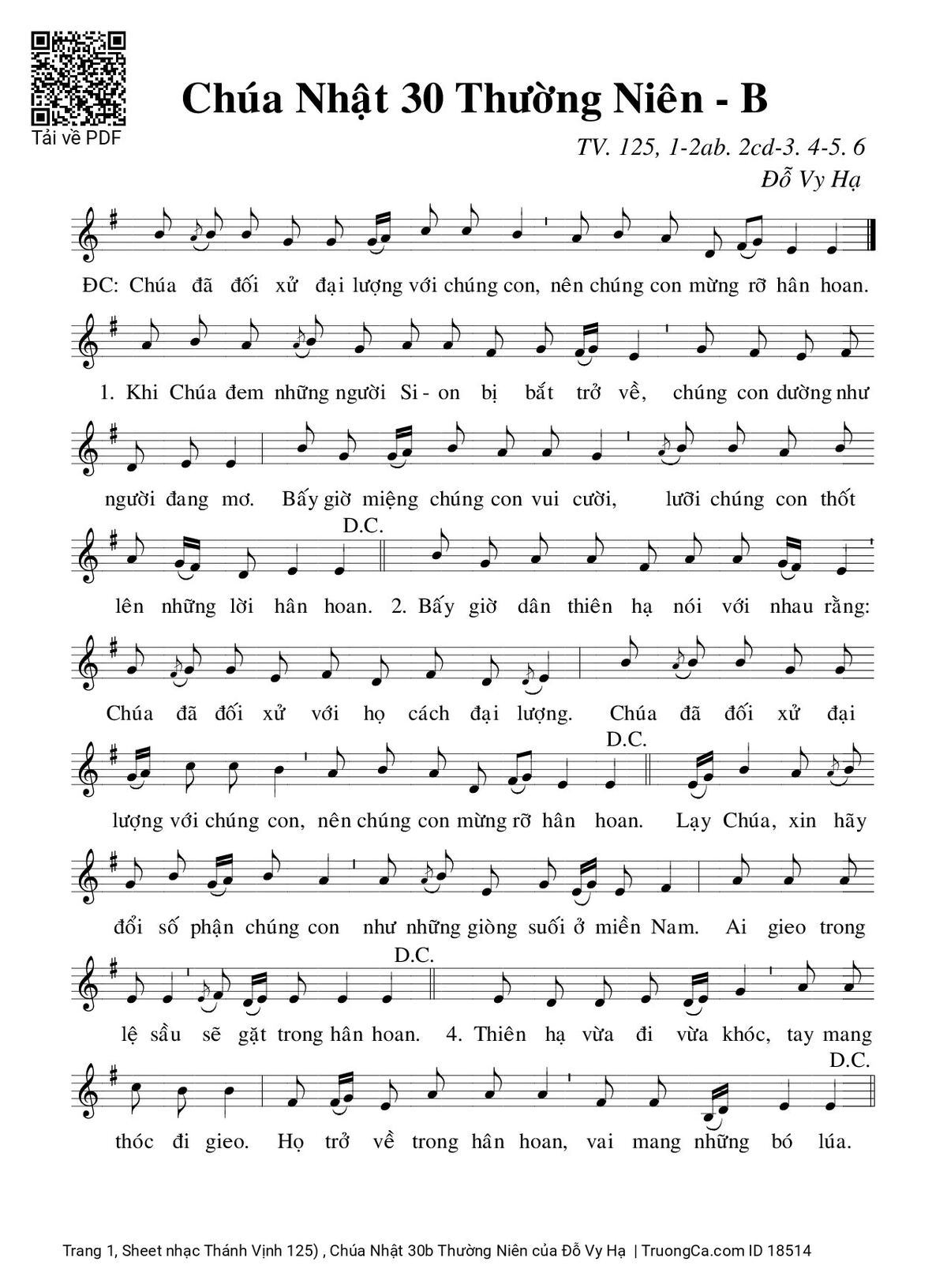 Sheet PDF with the same name Thánh Vịnh 125) , Chúa Nhật 30b Thường Niên: