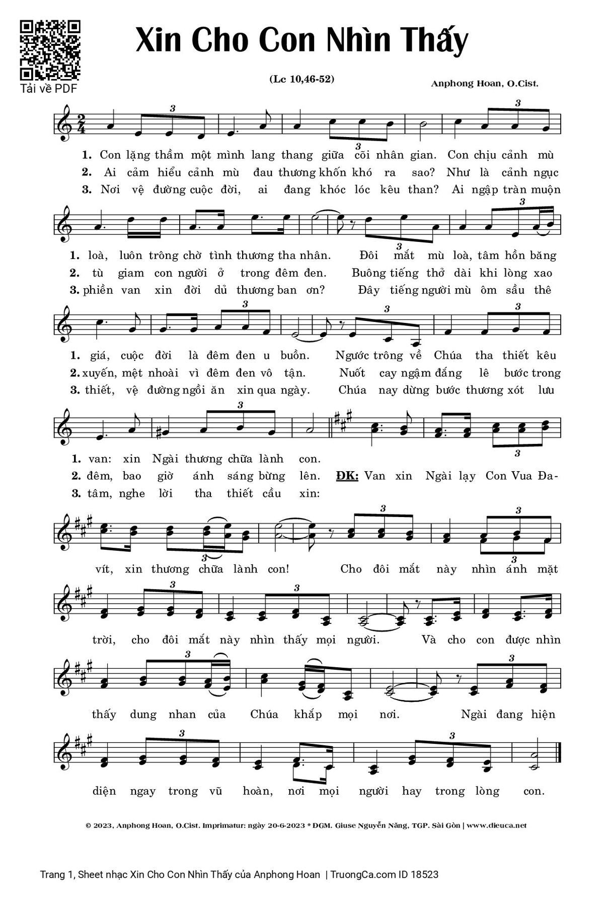Sheet PDF with the same name Xin Cho Con Nhìn Thấy: