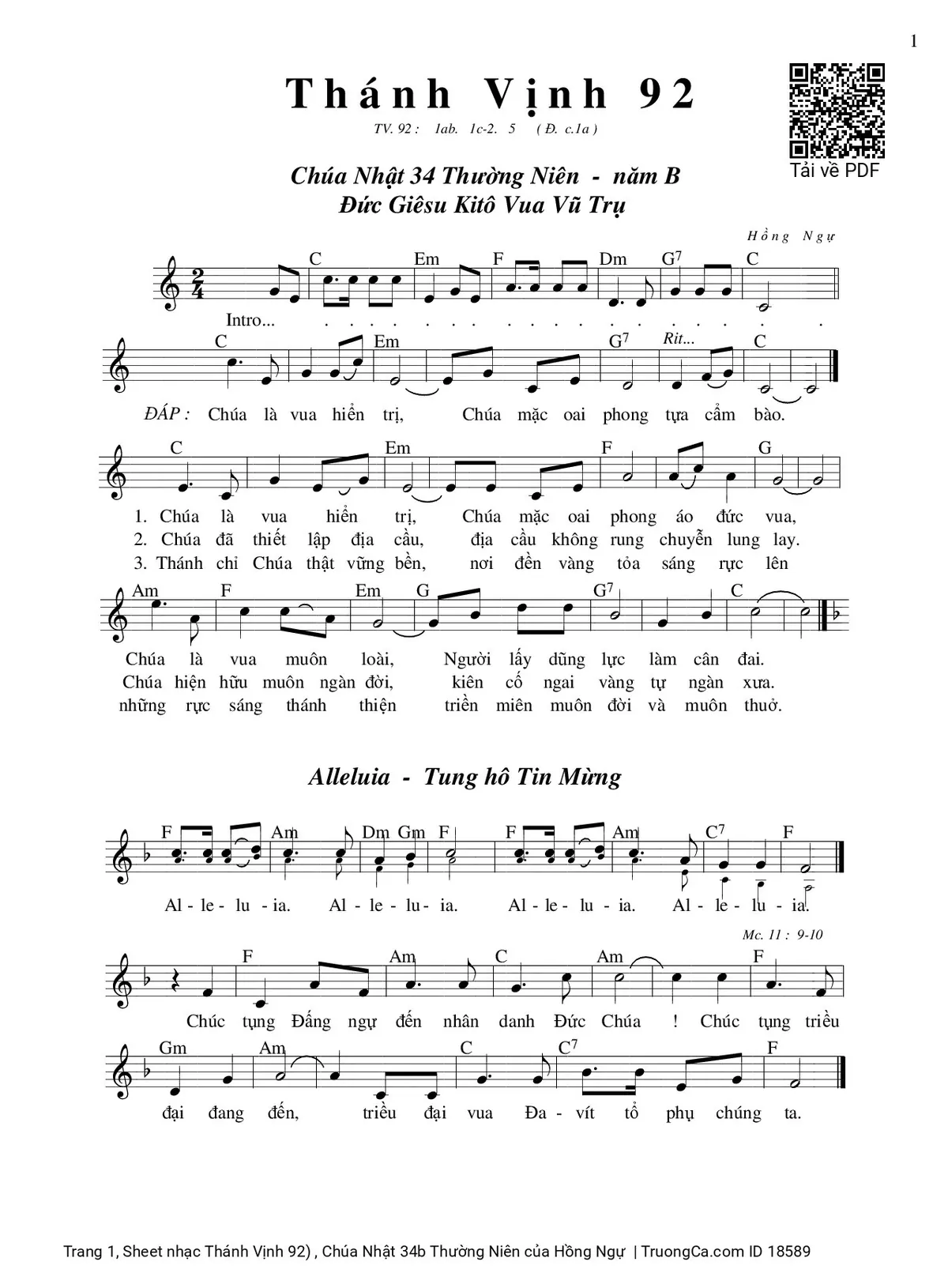 Sheet PDF with the same name Thánh Vịnh 92) , Chúa Nhật 34b Thường Niên: