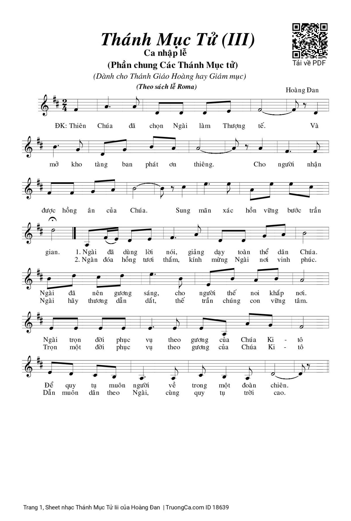 Điệp khúc. Thiên Chúa đã chọn Ngài làm thượng tế, và mở kho tàng ban phát ơn thiêng. Cho người nhận được hồng ân của Chúa. Sung mãn xác hồn vững bước trần gian.