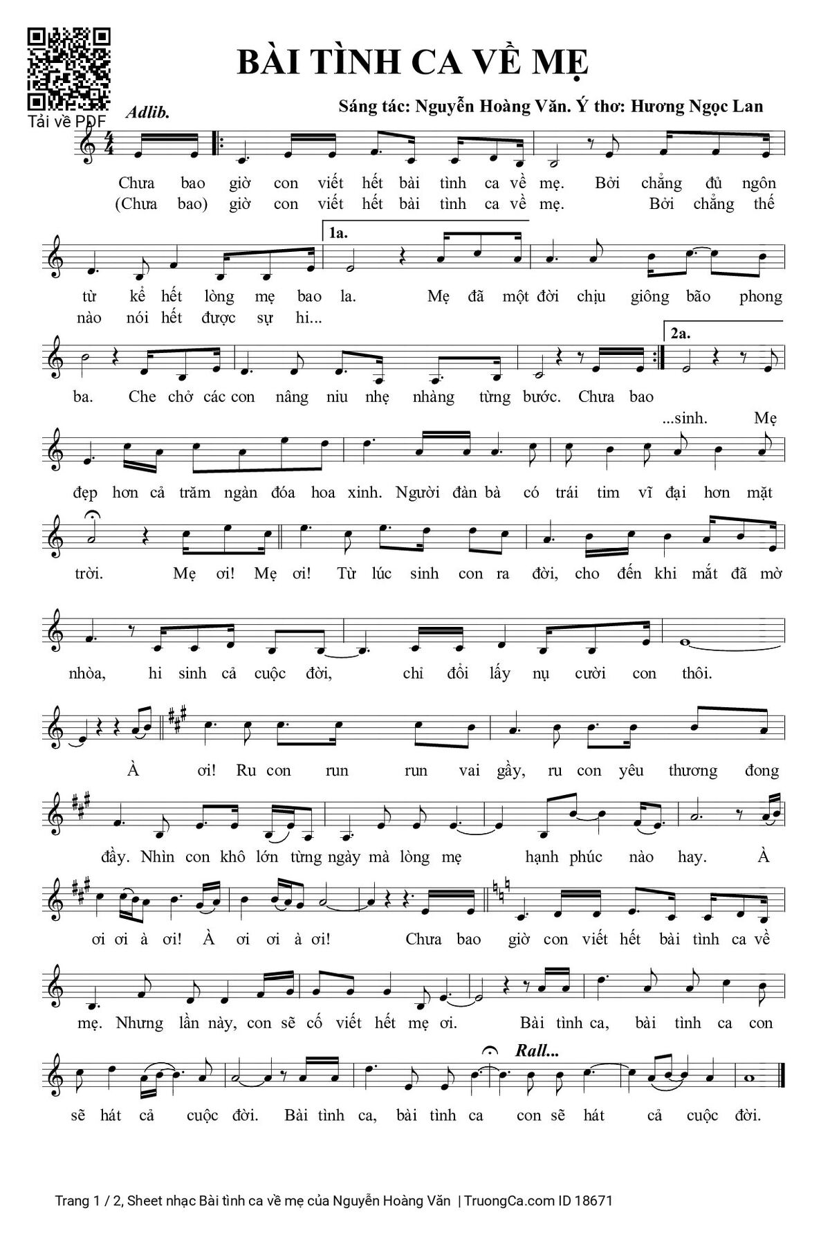 Nguyễn Hoàng Văn Chưa bao giờ con viết hết bài tình ca về mẹ [PDF] [Sheet] [Lyrics] [Mp4/Midi]