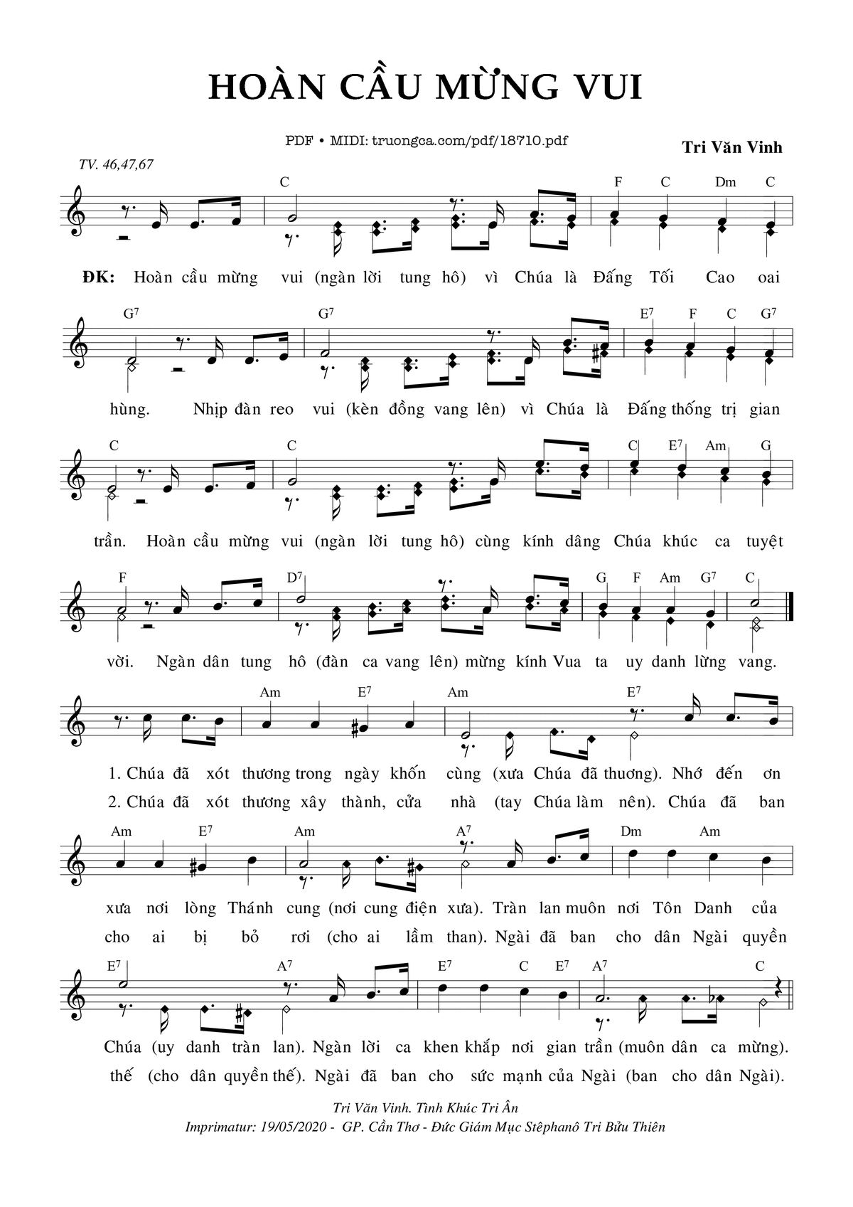Tri Văn Vinh Hoàn cầu mừng vui vì Chúa là Đấng tối cao oai hùng [PDF] [Sheet] [Lyrics] [Mp4/Midi]