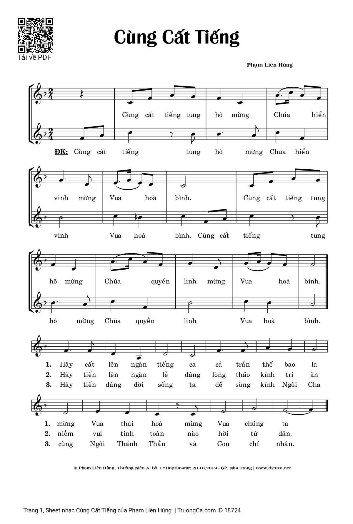 Phạm Liên Hùng Cùng cất tiếng tung hô mừng Chúa hiển vinh mừng Vua hoà bình [PDF] [Sheet] [Lyrics] [Mp4/Midi]