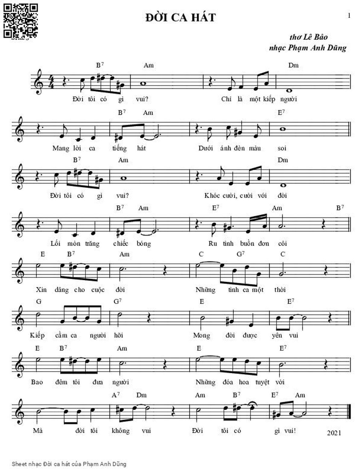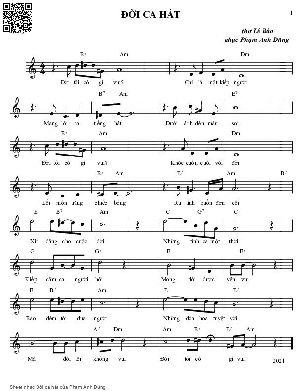 Phạm Anh Dũng Đời tôi có gì vui Chỉ là một kiếp người [PDF] [Sheet] [Lyrics] [Mp4/Midi]