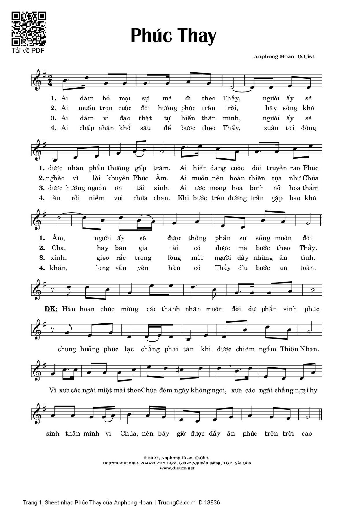 Transposition is the process of moving a song's melody and chords up or down in pitch by a constant interval. The direction of the transposition tool is indicated by a plus (+) sign for up and a minus (-) sign for down. Hover mouse over chords signs to see the chords chart of Phúc Thay song.