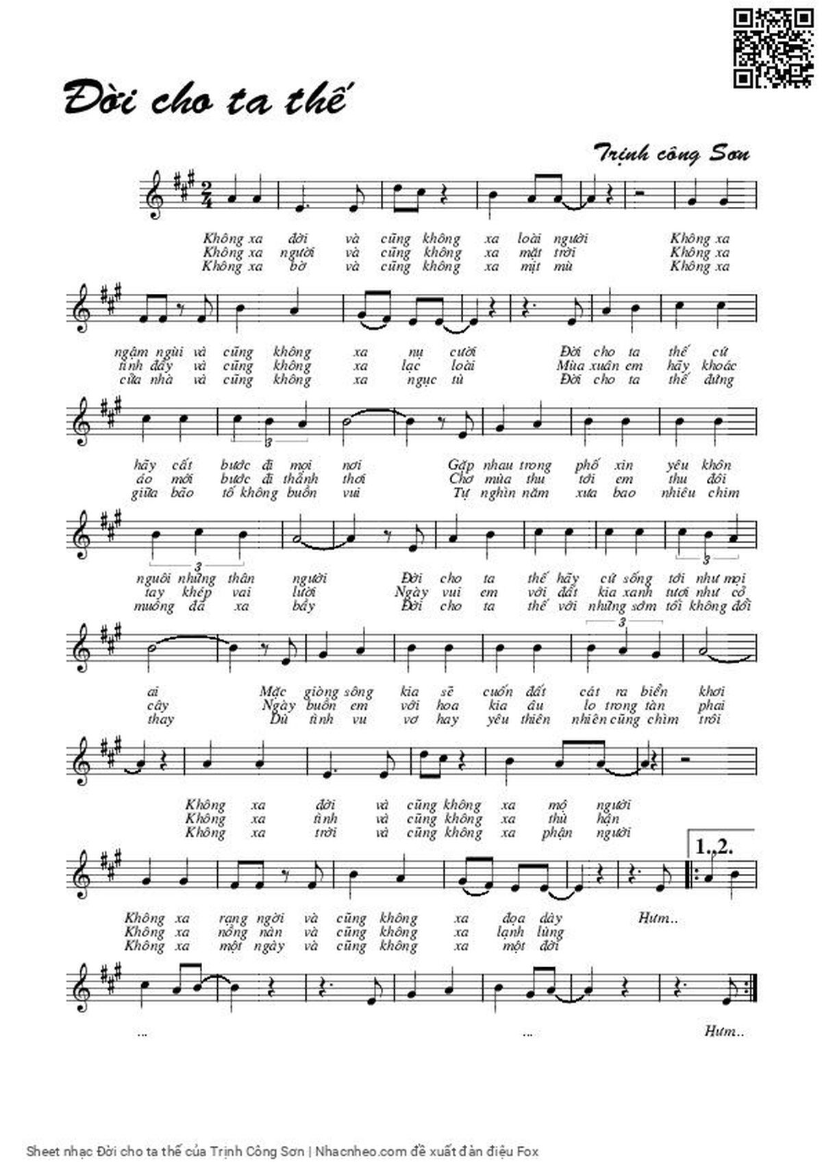 Trịnh Công Sơn Không xa đời và cũng không xa loài người [PDF] [Sheet] [Lyrics] [Mp4/Midi]