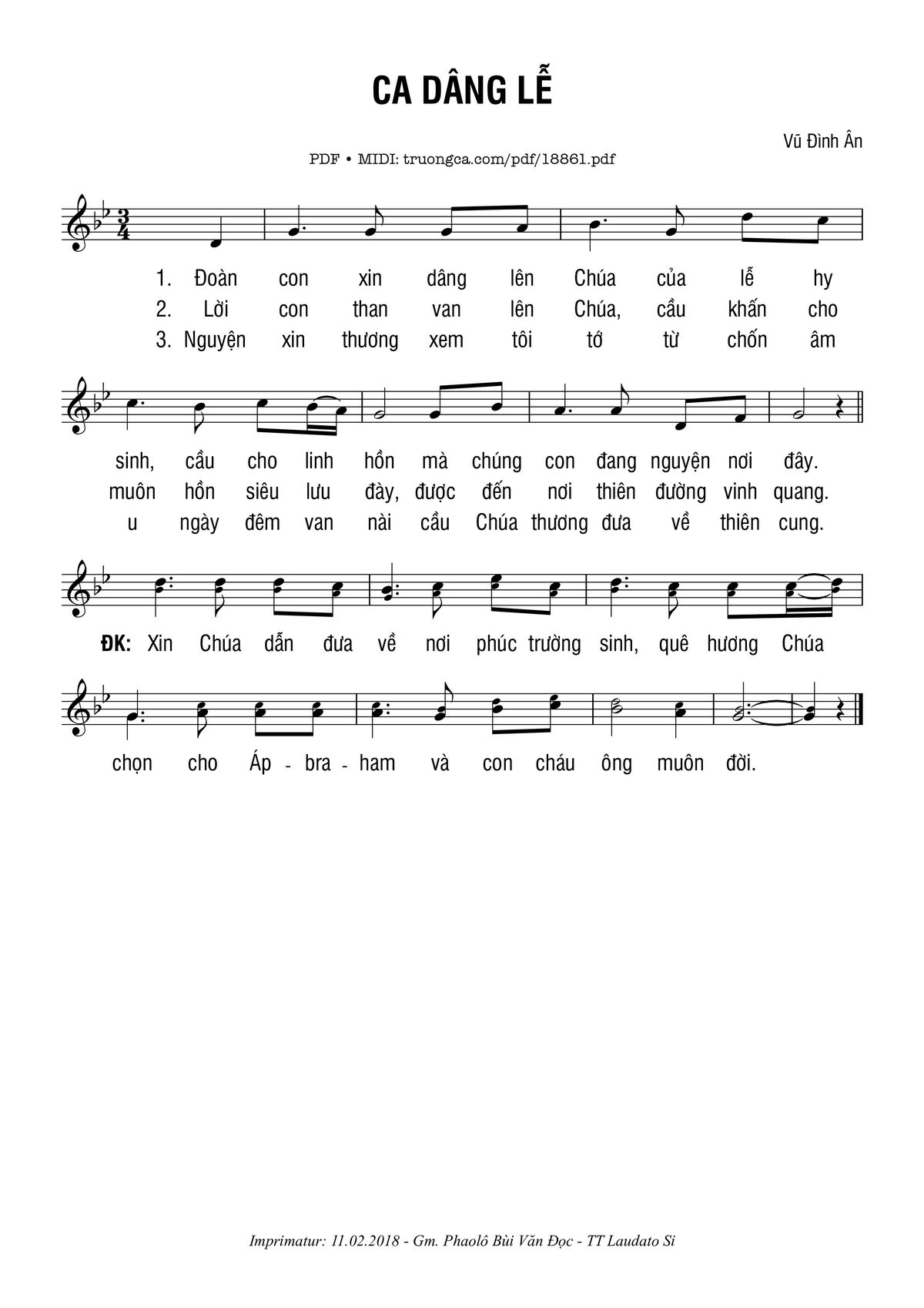 The Videos/audios Ca Dâng Lễ by Vũ Đình Ân were embed from Youtube, Musescore or the other 3rd links. Videos are subject to 3rd's copyright control and may be removed by YouTube's copyright rules and 3rd's policies or maybe included advertisements. If you cannot access to these songs, this mean that have been removed.