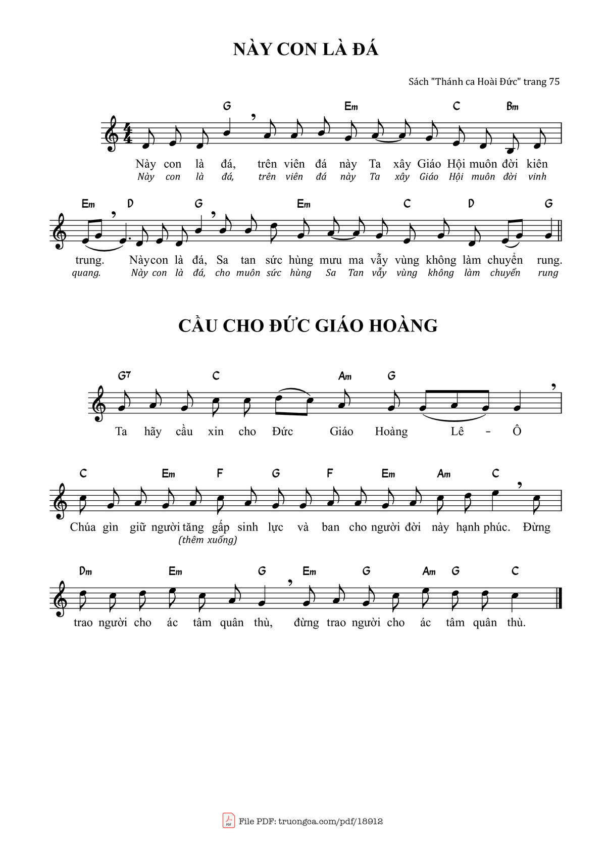 More similar sheets PDF Này Con Là Đá, Cầu Cho Ðức Giáo Hoàng Lê-Ô: