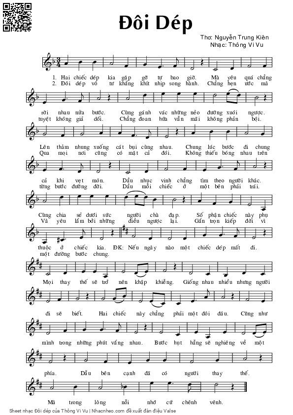 Thông Vi Vu Hai chiếc dép kia gặp gỡ từ bao giờ Mà yêu quá chẳng rời nhau nửa bước [PDF] [Sheet] [Lyrics] [Mp4/Midi]