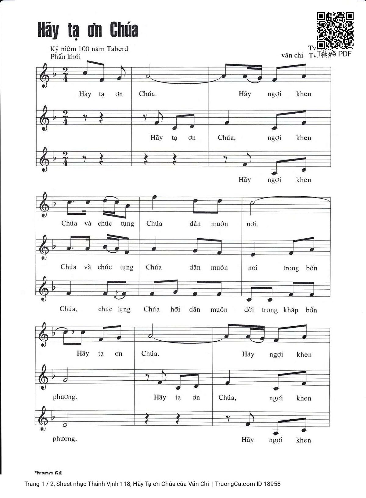 More similar sheets PDF Thánh Vịnh 118, Hãy Tạ ơn Chúa: