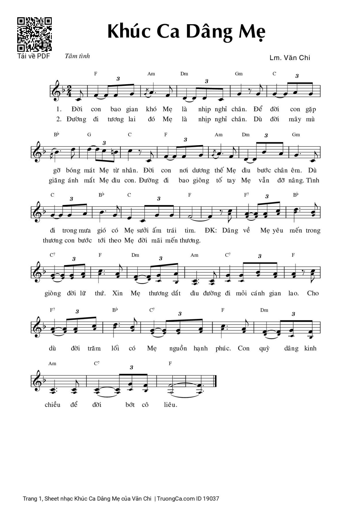 Sheet PDF with the same name Khúc Ca Dâng Mẹ: