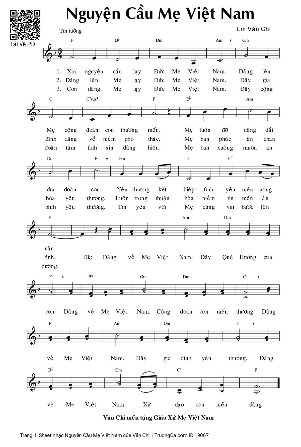 Sheet PDF with the same name Nguyện Cầu Mẹ Việt Nam:
