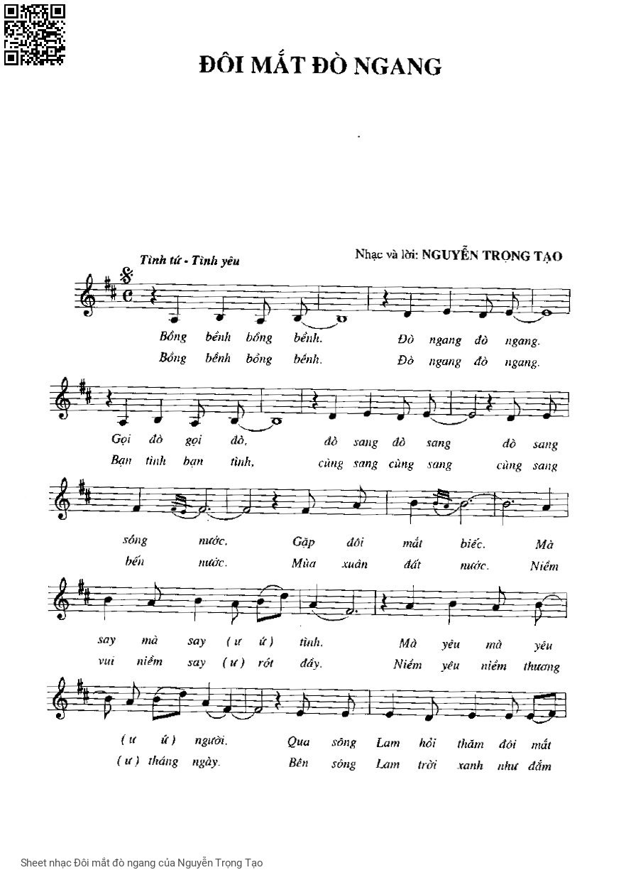 Nguyễn Trọng Tạo Bồng bềnh bồng bềnh đò ngang đò ngang [PDF] [Sheet] [Lyrics] [Mp4/Midi]