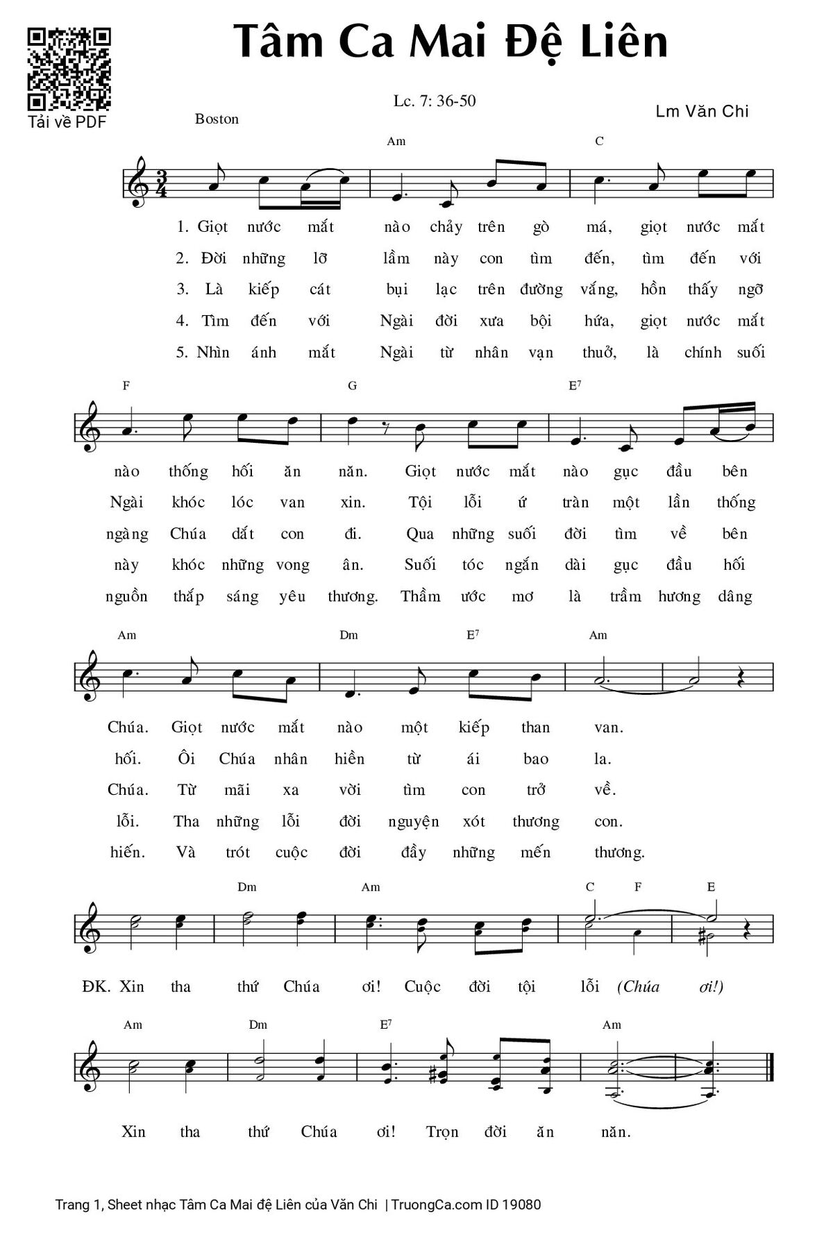 Sheet PDF with the same name Tâm Ca Mai đệ Liên: