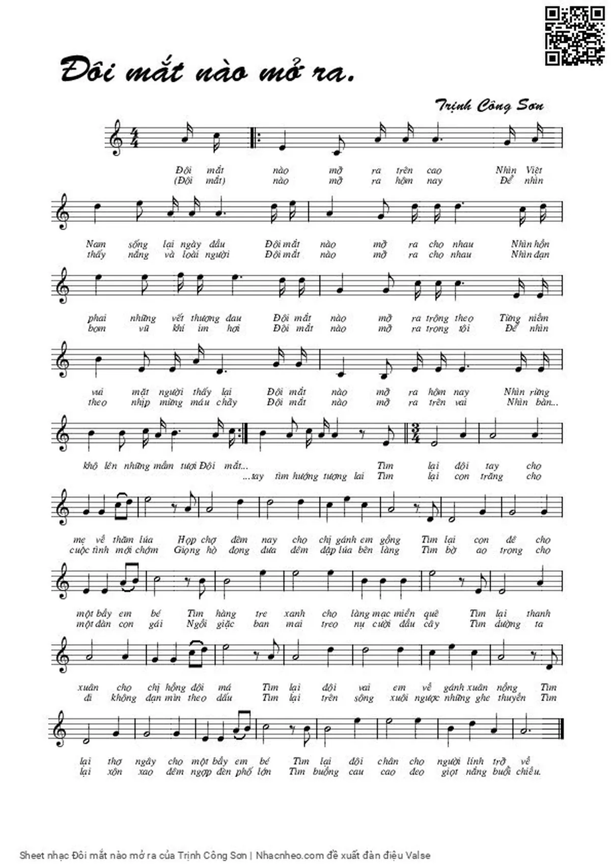 Trịnh Công Sơn a Đôi mắt nào mở ra trên cao Nhìn Việt Nam sống lại ngày đầu [PDF] [Sheet] [Lyrics] [Mp4/Midi]