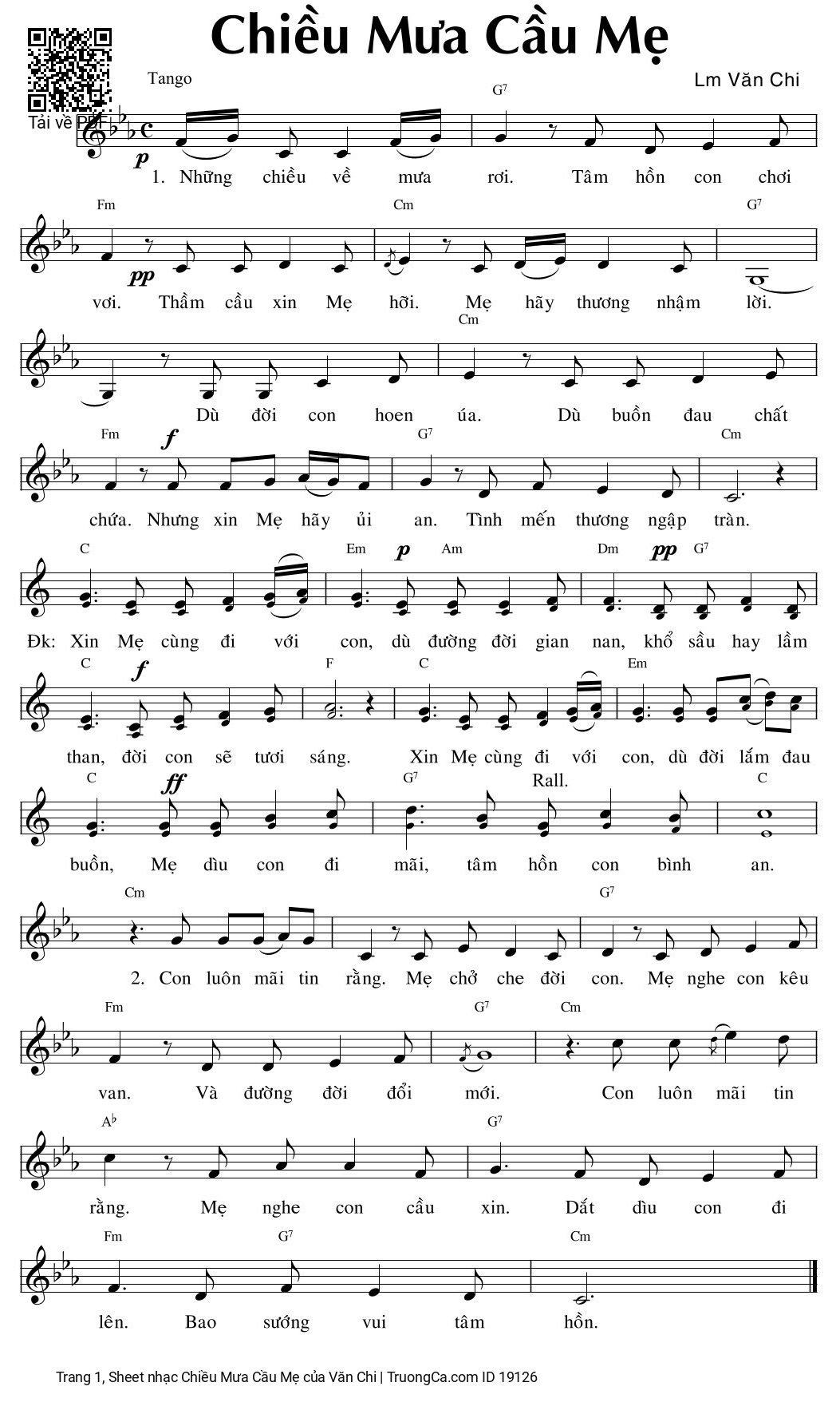 Sheet PDF with the same name Chiều Mưa Cầu Mẹ: