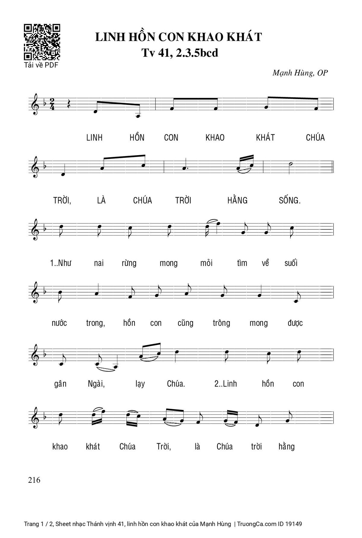 Mạnh Hùng Linh hồn con khao khát chúa trời [PDF] [Sheet] [Lyrics] [Mp4/Midi]