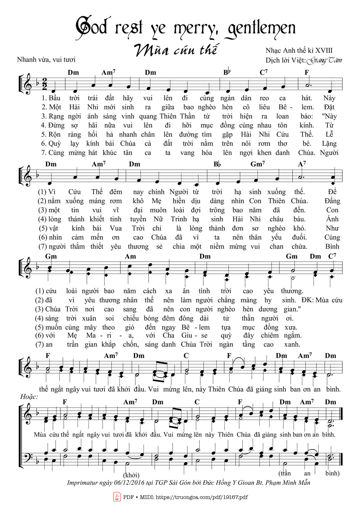 7. Cùng mừng hát khúc tân ca ta vang hoà lên ngợi khen danh Chúa. Người người thắm thiết yêu thương sẻ chia một niềm mừng vui chan chứa. Bình an trần gian khắp chốn, sáng danh Chúa Trời ngàn tầng cao xanh.