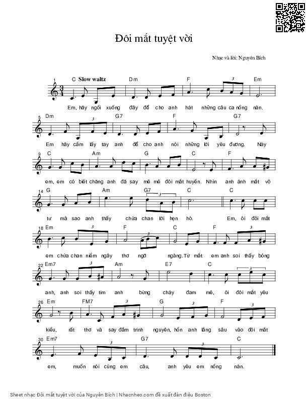 Nguyên Bích Em hãy ngồi xuống đây Để cho anh hát những câu nồng nàn [PDF] [Sheet] [Lyrics] [Mp4/Midi]