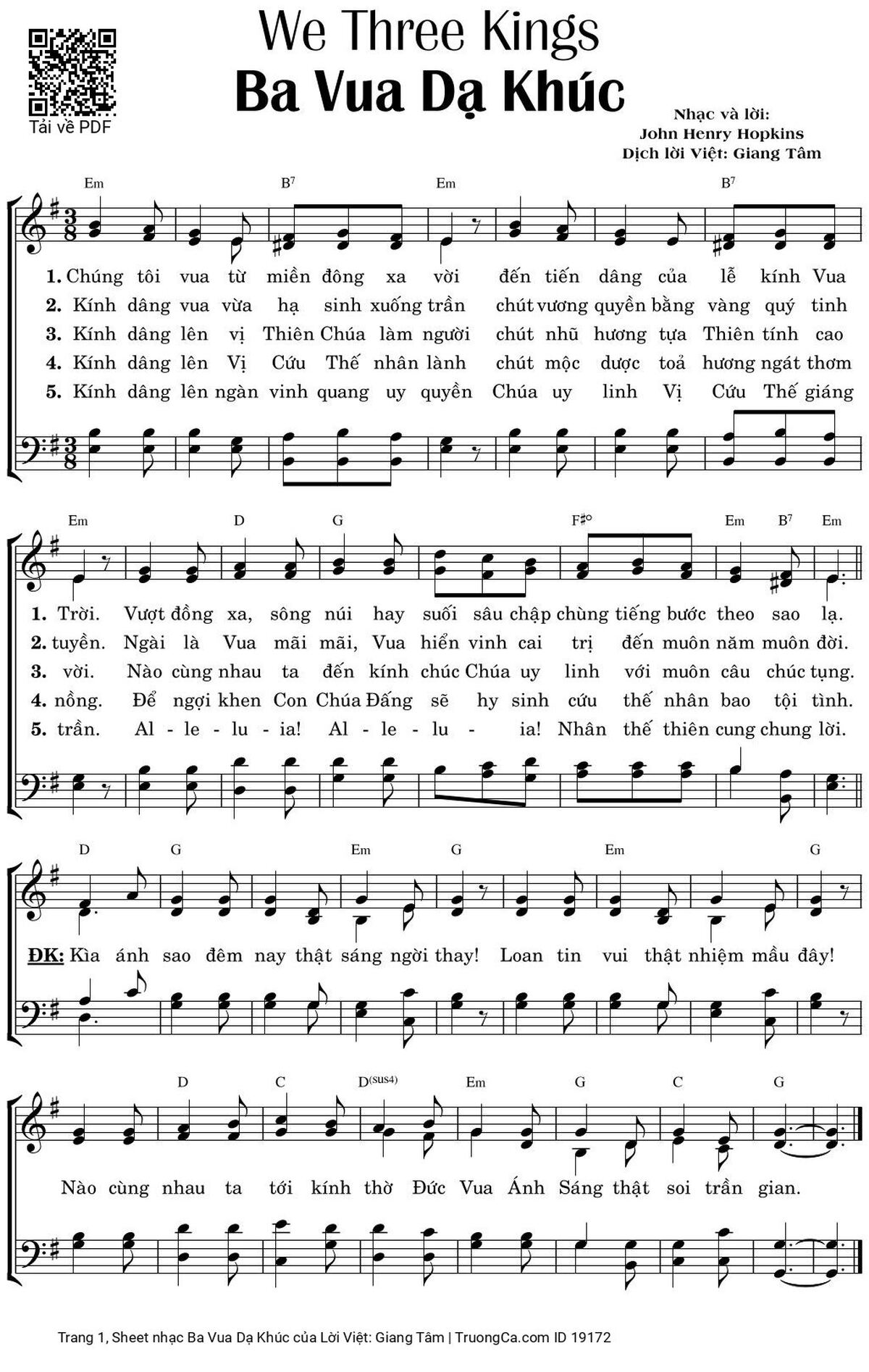Lời Việt: Giang Tâm Chúng tôi vua từ miền đông xa vời đến tiến dâng của lễ kính Vua Trời [PDF] [Sheet] [Lyrics] [Mp4/Midi]