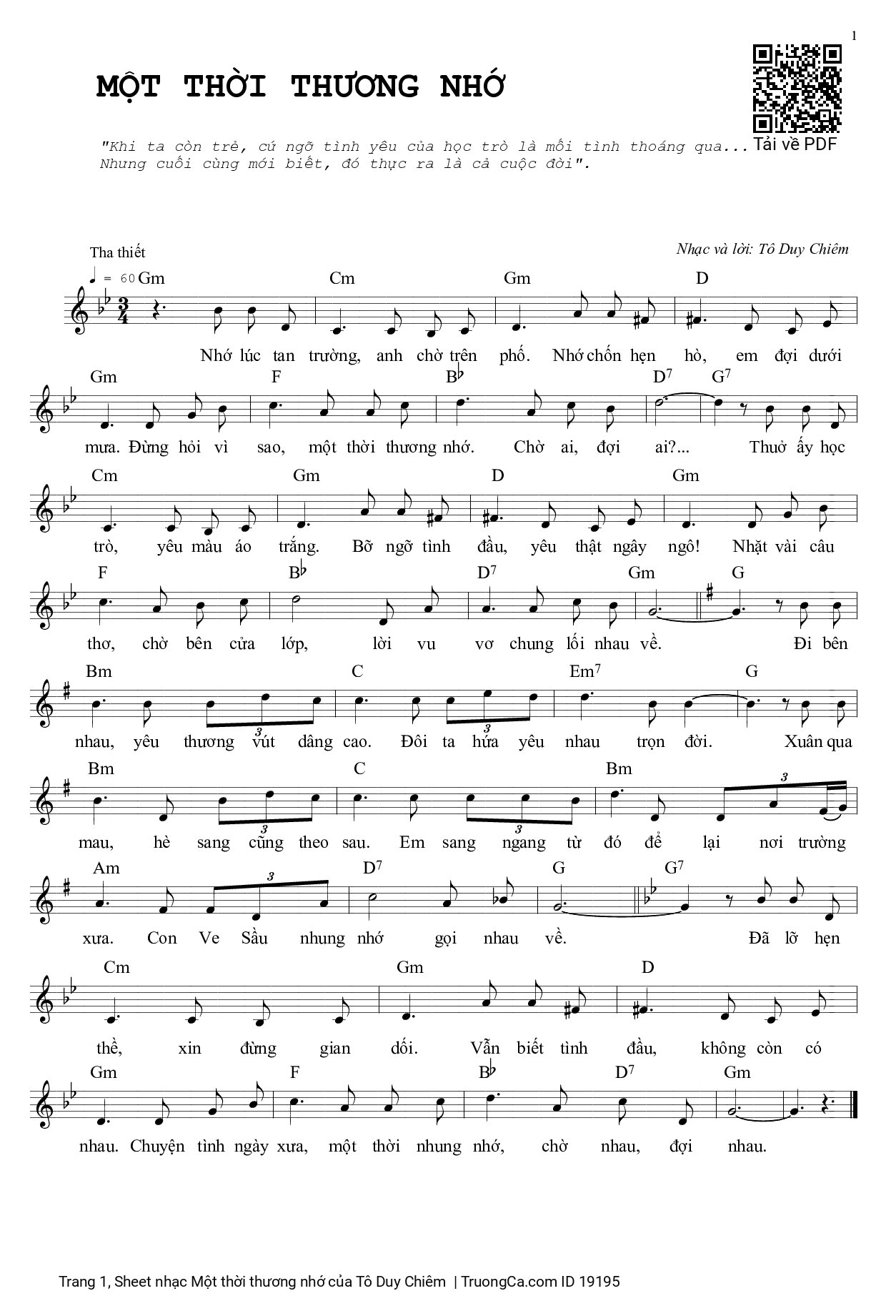 Tô Duy Chiêm Nhớ lúc tan trường, anh chờ trên phố [PDF] [Sheet] [Lyrics] [Mp4/Midi]