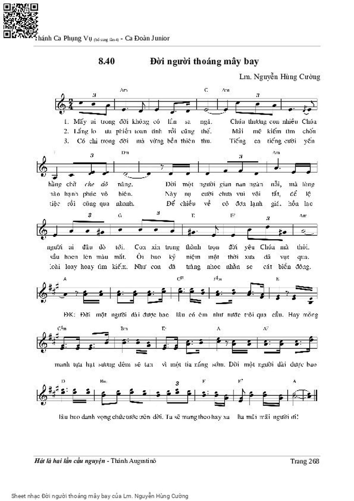 The Videos/audios Đời người thoáng mây bay by Lm. Nguyễn Hùng Cường were embed from Youtube, Musescore or the other 3rd links. Videos are subject to 3rd's copyright control and may be removed by YouTube's copyright rules and 3rd's policies or maybe included advertisements. If you cannot access to these songs, this mean that have been removed.