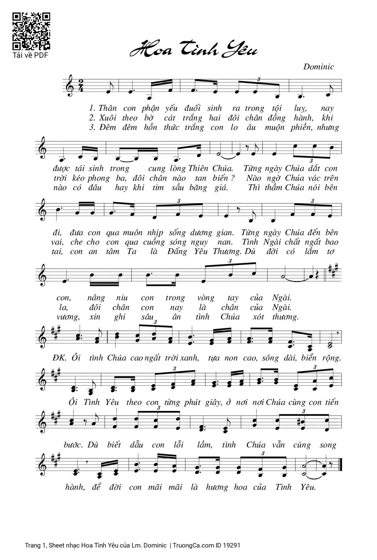 Điệp khúc. Ôi tình Chúa cao ngất trời xanh, tựa non cao, sông dài, biển rộng. Ôi tình yêu theo con từng phút giây, ở nơi nơi Chúa cùng con tiến bước. Dù biết dẫu con lỗi lầm, tình Chúa vẫn cùng con song hành, để đời con mãi mãi là hương hoa của tình yêu.