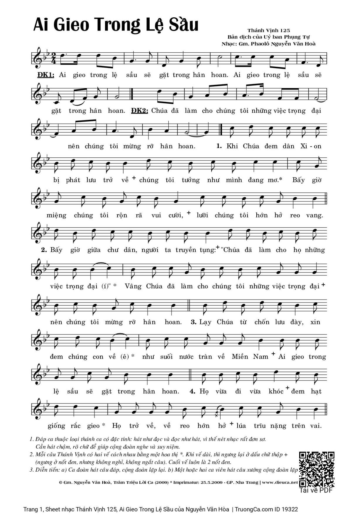More similar sheets PDF Thánh Vịnh 125, Ai Gieo Trong Lệ Sầu: