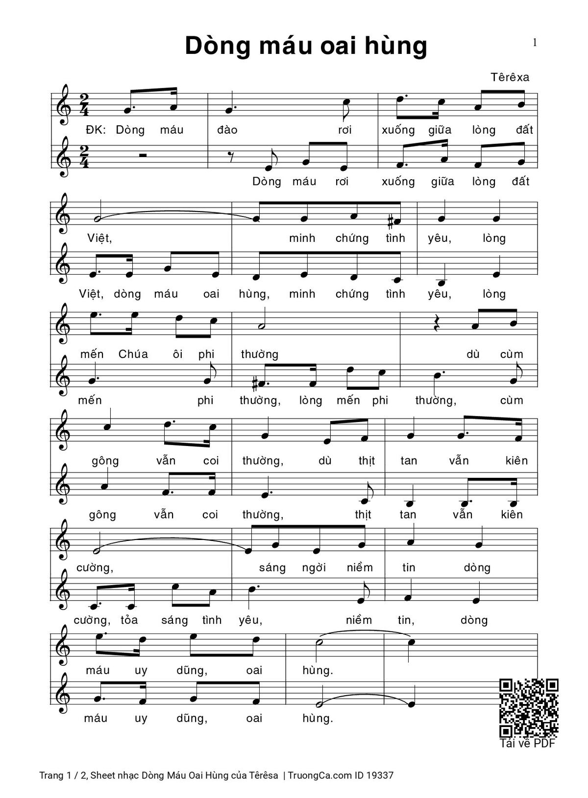 Sheet PDF with the same name Dòng Máu Oai Hùng: